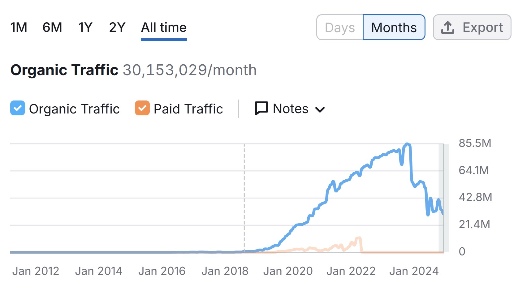 When we look at OnlyFans though, the trend is very clear according to Semrush, with the site losing half of its traffic since August of last year. Although there have been more rival sites appearing, such as Fansly, it can’t explain such a dramatic fall.