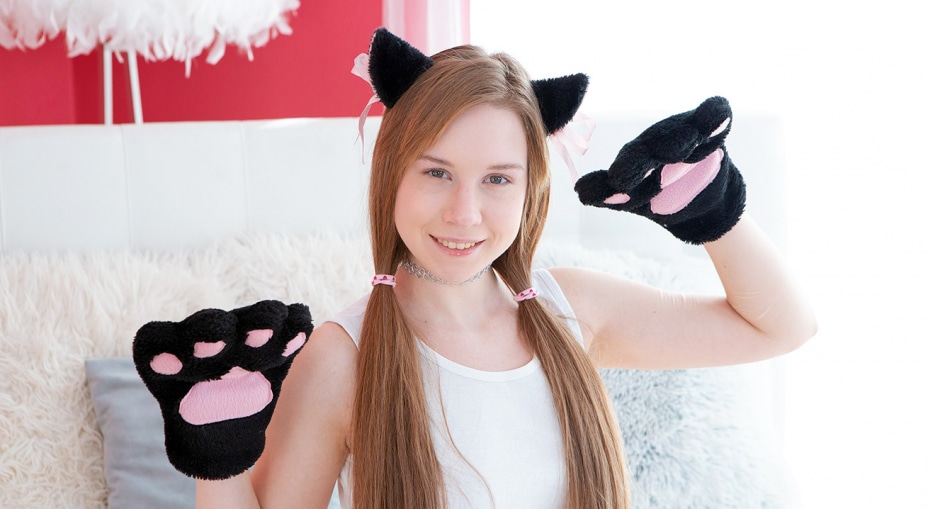 A beautiful solo masturbation video that really displays the cute and playful side of this super sweet teen girl, as she plays with her pussy for you complete with fluffy cat paws and ears!